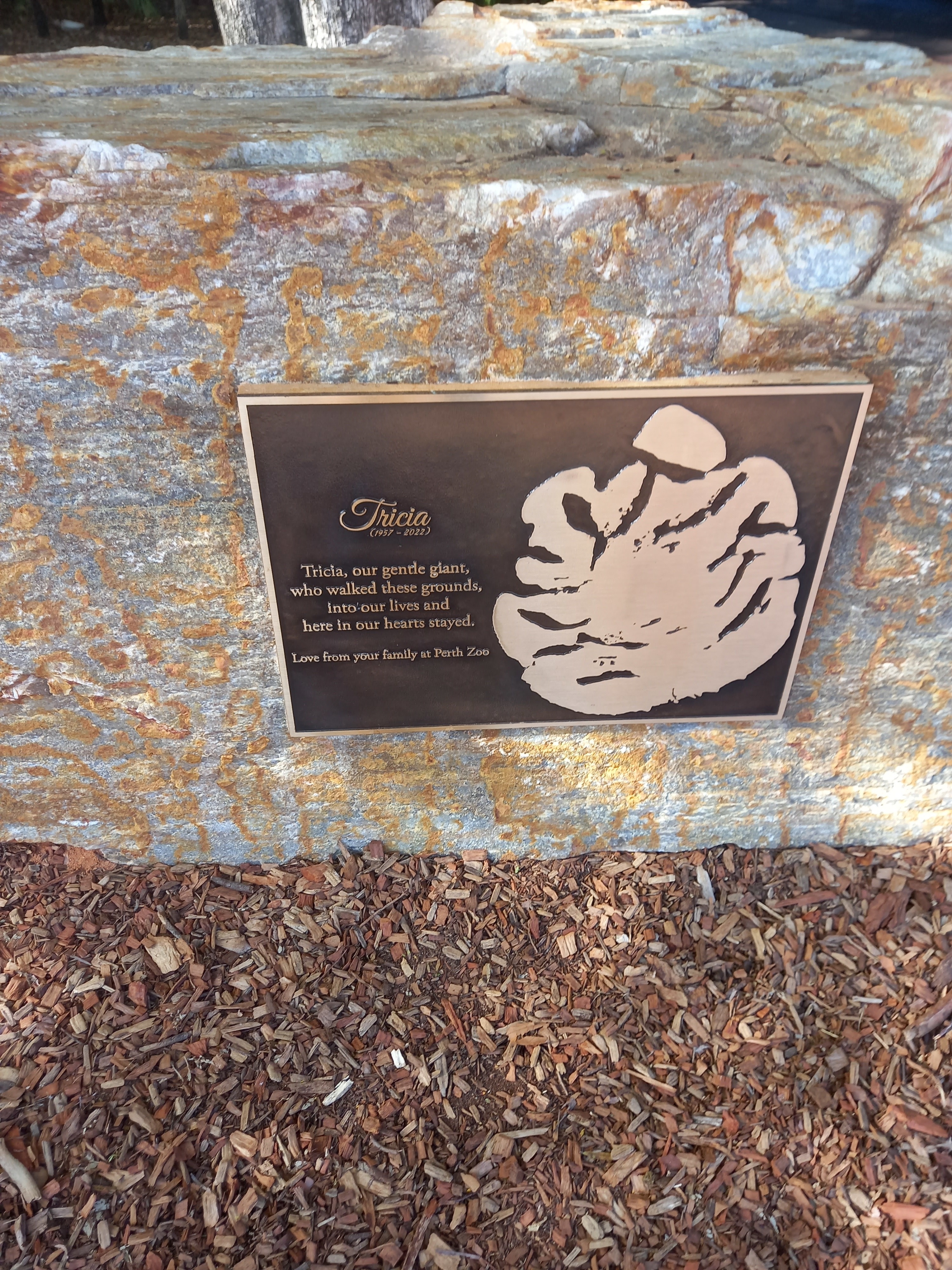 Hello everyone today iam at the zoo in my city of Perth it's my favourite place I love animals here are some photos of my day I just arrived at the zoo. I got myself a present a membership to the zoo so for 12 months I can get free entry to the zoo and recently The very much loved 🐘 elephant Trica. She was a icon she died earlier this year and the zoo has made tribute to her with her name on this rock.its school holidays so by the water in perth city they have a ferries wheel and merry go round. For the kids.