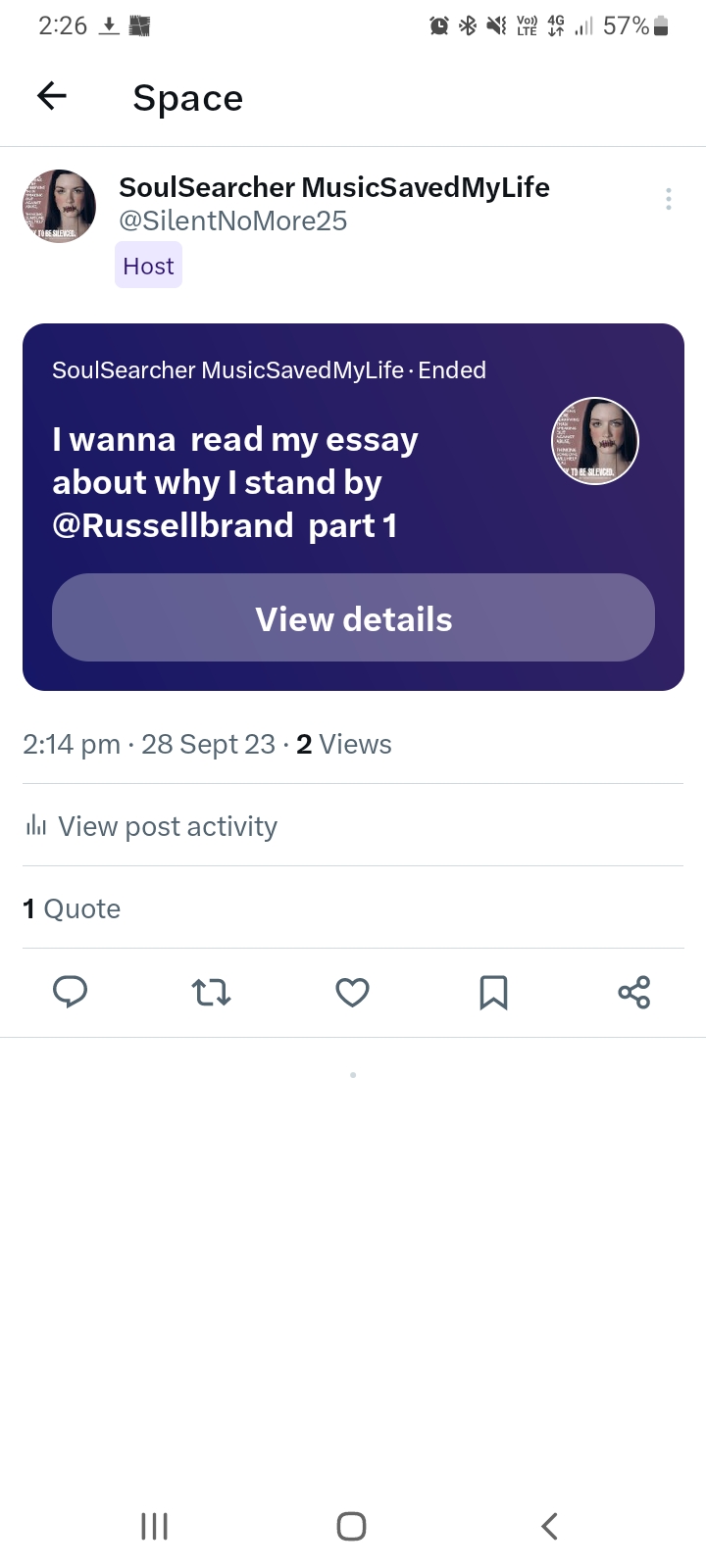 I did a audio reading my essay why is tand by Russell brand on x I think what Elon has done with X is a great thing I hate censorship I support Free speech