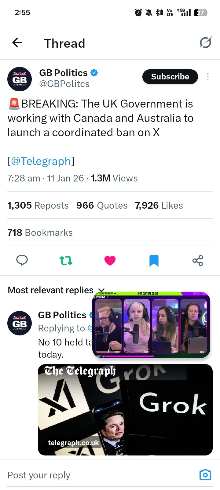 Aussies and the UK British people Are Screaming with Rage On X Because Both countries Are falling apart due to The Their Polications Being Total Cowards and Neglecting Their people and being Professional Liars and Allowing the Forgein Invasion To the West From the Third World and to Replace Their western English speaking people To Work And Study at University and Tafes want to Ban X Because X Has taken over their Lefty funded Tv News That they demand That People watch Because these gutless Lying assholes Want too Brainwash as Many people as possible. In today's Episode of Australia downfall The Evil and Highly Hated Keir Stammer and Albo And The Asshole Coward that is In Canada I think are all Wef puppets are going to war With Elon Musk Because they hate Free Speech and Elon Musk Because Elon Is a free Speech warrior. But there is a Huge amount of Irony In Albo and Keir Stammer wanting to cancel and Ban X Is that Because Albo and Keir Stammer do Post on X themselves so a Ban On X would be Censoring themselves. Albo and Keir Are as Mentally dumb As We all think they are That they don't See that Irony. It's just like Albo Saying that he Is a Big fan of Taylor Swift but Not seeing the Irony Of them wanting to Ban X When they Post On X themselves. I and I would say a Large Portion Of The Truth seekers and truth speakers On X don't Trust any Words that these Free Speech hating Liars cowards that can't handle the speech Being seeked or spoken or even handle a Joke being Made about them. Terrifying News the Gutless Cowards and Professional liars Albo and Keir Stammer and the Leader of Canada Say that they want to Ban X Because they can't handle a joke. My Saying is Don't Expect decency from cowards. I Do Pray that God and Jesus Does Grant Elon Musk Grants Aussies and the UK Patriots and Truth speakers All the strength That they Need To Keep up the fight for Free speech. this Declaration That The cowards Albo and Keir Stammer want to Ban X Is Soo backwards and their Verison Of Free Speech is sooo One sided Because the Far Left Want Total free speech for their Wokeness and Virtue Signalling bullshit to All the Victims Groups of Human Beings that the Far Left do waste Tax Payers Money and time Pandering too That don't Achieve anything. In today's Episode of Australia downfall.but if you have the guts to speak Out against them and call Out their Mass Migration Invasion Of the UK And Australia And How the UK People Are Being Rapped By Forgein Hateful Musilm Migrants or if you speak out against Their Empty Virtue Signalling They want to Censor You so Albo and Keir Demand for the Ban Of X Is too Backwards. In today's Episode of Australia downfall. My Other Quote is Justice is Selectively Colour and Power and Money Blind. Terrifying News the Gutless Cowards and Professional liars Albo and Keir Stammer and the Leader of Canada Say they want to Ban X Because they can't Handle a Joke Being made about them. They say that this Ban of X Is About Grok making Memes Of them in a Bikini And they Have no Soul Or a sense of Humour Bewteen them and they want to Wreck their countries with no Push Back. but that is sooo Anti Reality. In today's Episode of Australia downfall. Terrifying News the Gutless Cowards and Professional liars Albo and Keir Stammer and the Leader Of Canada say they want to Ban X Because they can't handle a Joke about them.